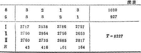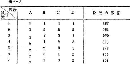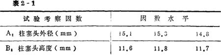 (二)方差分析法 通过一个单因素试验的例子来介绍这种方法。在上例中,关于柱塞组合件收口强度稳定性的试验,指出了B因素(柱塞头高L)再增大一点可能对提高拉脱力更有利。为此,以B1=11.8mm与B2=11.9mm做单因素的对比试验,每个水平重复五次,试验数据见表2-4。
