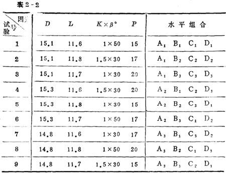 | 释义 | 几种常用的数据处理方法 试验数据处理和分折的方法很多,中、小企业的工程技术中常用的有极差分析、方差分析和回归分析等方法,现在分别作简单的介绍。 (一)极差分析法 极差分析是通过计算和比较相差大小来分析处理试验数据的方法。用于多因数多水平的正交试验数据处理(当不考虑偶然误差对试验结果的影响时)较简便易行,仅需经过少量的计算就能够找到各因素对指标影响的主次程度,获得达到最佳指标时各因素的水平,以及明确进一步试验研究的方向。 例:柱塞组合件收口强度稳定性试验 油泵中的柱塞组合件,是由柱塞杆和柱塞头在收口机上组合收口而成(图2-1)。组合件要满足承受拉脱力F≥900kg的要求。为提高产品质量,解决拉脱力波动大的问题。某厂决定用正交试验方法安排试验,如图2-2所示,为柱塞头零件图。