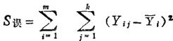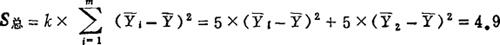 式中:m为水平个数,本例为2;k为重复试验次数,本例为5。 将表2-4中数据代入: