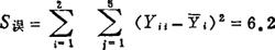 表中“Yij”表示第i个试验条件下第j次试验的试验数据。如,Y11表示B1条件下第一次的试验数据为5.5,Y23表示在B2条件下第三次试验的数据7.5。 为了把试验误差产生的影响同条件变化产生的影响区分开,以便认识条件变化对指标的影响,我们采用方差分析法来处理试验数据。其步骤为: 第一步,计算试验误差引起的数据波动。 误差是每个试验数据与其理论值的差值。理论值用同水平下试验数据的平均值