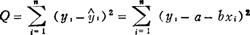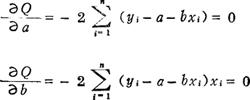 若使直线与数据符合得最好,必须使Q最小。依数学分析中的极值原理,只有对式中a,b求偏导数,且令其等于零。于是a,b满足下式: