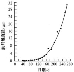 图1-1-6 牛胎儿体重增加曲线图 (二)身体组成的变化 胎儿在生长过程中,身体的不同部位的组成发生了很大的变化,尤其是胎儿的肌肉。胎儿肌肉中水分含量随怀孕时间的增长而降低,固形物(灰分、蛋白质、乙醚抽提物)含量增加。很多研究表明,出生前水分含量持续降低是一种普遍现象。 (三)出生前营养对出生时胎儿状况的影响 母畜的营养水平影响胎儿出生时的体重,营养不良的母畜所生的幼畜,平均体重和活力都较低,这样的幼畜身体中可分离的肌肉和脂肪占的比例相对较低,骨骼和内脏占的比例较大,用化学方法可测到的脂肪和氮的比例也较低,而水分、灰分、磷的含量则较高。 除了食物量的影响外,母畜的营养质量同样影响幼畜的大小和活力。母畜日粮中如果缺乏蛋白质和钙,会导致幼畜的体重和活力降低,严重的营养不良会增加幼畜的死亡率,而且会对幼畜的生长和行为产生永久的影响。由于很多新出生的健康家畜体重差别很大,因此还无法证明出生体重和成熟时的体格具有相关性。 |