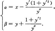 图4.4 渐屈线与渐伸线 当点(x,f(x))沿曲线C移动时,相应的曲率中心D的轨迹曲线G称为曲线C的渐屈线,而曲线C称为曲线G的渐伸线. 曲率中心(渐屈线)的计算公式 曲线y=f(x)具有二阶导数y″,且y″≠0,设曲线在点M(x,y)处的曲率中心为D(α,β),则有