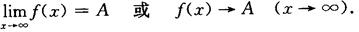定理 自变量趋向无穷大时函数的极限定义 如果对于任意给定的正数ε,总相应存在正数X,使得满足不等式|x|>X的一切x,所对应的函数值f(x)都满足不等式|f(x)-A|<ε,那么常数A就叫函数f(x)当x→∞时的极限,记作