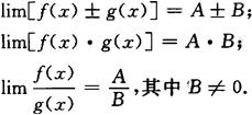定理 如果limf(x)存在,且c为常数,则 lim[cf(x)]=climf(x). 定理 如果limf(x)存在,且n是正整数,则 lim[f(x)]n=[limf(x)]n. 局部不等性定理 如果φ(x)>ψ(x),且limφ(x)=a,limψ(x)=b,则a≥b. 复合函数的极限运算法则 设函数u=φ(x)当x→x0时的极限存在且等于a,即 夹逼准则Ⅰ 如果数列xn,yn及zn满足下列条件 yn≤xn≤zn(n=1,2,3,…), 且 夹逼准则Ⅱ 如果当 g(x)≤f(x)≤h(x), 且limg(x)=A,limh(x)=A,那么limf(x)存在,且等于A. 单调数列 1.如果数列{xn}满足条件 x1≤x2≤…≤xn≤xn+1≤…, 就称数列{xn}是单调递增数列. 2.如果数列{xn}满足条件 x1≥x2≥…≥xn≥xn+1≥…, 就称数列{xn}是单调递减数列. 单调递增数列和单调递减数列统称为单调数列. 单调有界准则 单调有界数列必有极限. 柯西极限存在准则(柯西收敛原理) 数列{xn}收敛的充分必要条件是对于任意给定的正数ε,存在着这样的正整数N,使得当m>N,n>N时,恒有|xn-xm|<ε. 两个重要极限