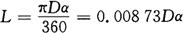 上两式中 L——弧长; R——圆弧半径; D——圆直径; α——圆心角。 图3-3(a)、(b)中的弧长还可用下式计算: L=Rθ 式中 θ——为圆心角α的弧度表示, |