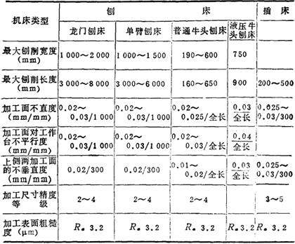 表14-106 刨床、插床类型和工作精度