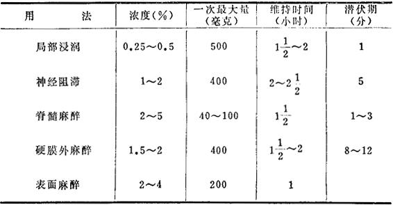 (三)为延长其麻醉作用时间和预防毒性反应,麻药中也宜加用副肾素,用法同普鲁卡因。