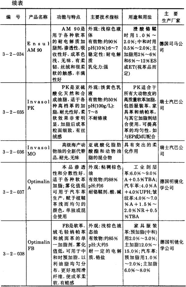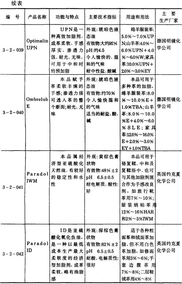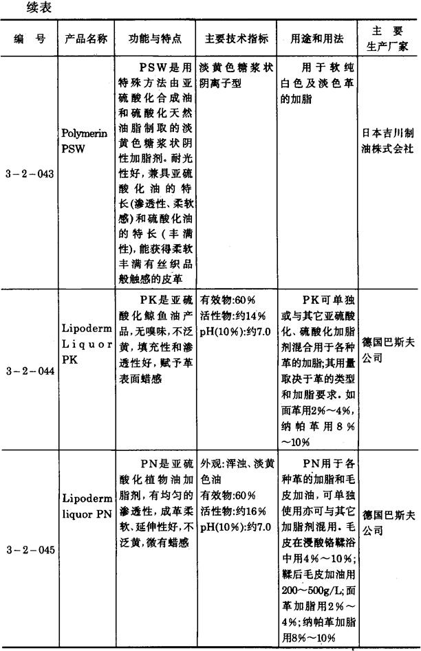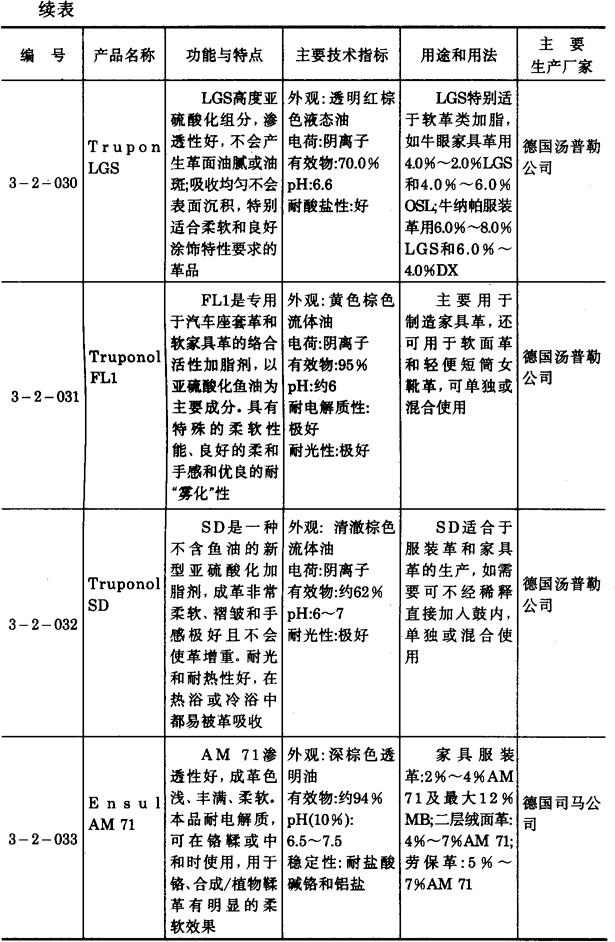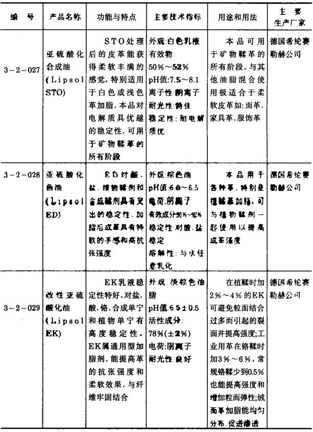 其它亚硫酸化皮革加脂剂产品 3-2-027~3-2-046