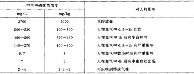 磷化氢处理烟草粉螟的最佳浓度为0.058mg/L,考虑到熏蒸时间,实际熏蒸时宜采用浓度为0.49mg/L,该浓度需要的熏蒸时间为48h。 ②温度对药效的影响。温度是影响磷化氢杀虫效果的重要因素之一,影响情况也比较复杂。在10~35℃范围内,温度较高时,磷化氢的杀虫效果明显增强。 (3)磷化氢对人的毒性。磷化氢在空气中的最高允许浓度为0.003mg/L。磷化氢对人的毒性见表11-3-3。 表11-3-3 磷化氢对人的毒性