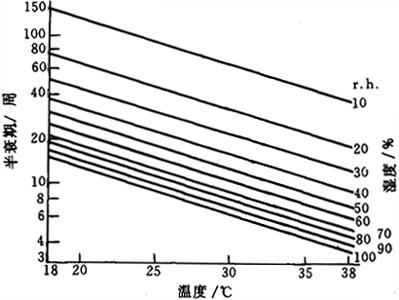 图11-3-6 温湿度对药效的影响 (3)毒性。国产杀虫松纯度为93%,对白鼠口服毒性,小白鼠LD50雄为794mg/kg,雌为1080mg/kg;大白鼠LD50雄为501mg/kg,雌为584mg/kg。按农药急性毒性分级属低毒级。 (4)应用技术。 ①使用范围:杀虫松可用于贮存烟叶的防虫,也可用于空仓杀虫,不能用于成品卷烟。 ②用药量:杀虫松一般用量为5~15mg/kg,用于包装和空仓杀虫,用药量为0.5g/m2。 ③施药方法:同防虫磷。 3.凯安保 凯安保是溴氰菊酯的一种剂型,由溴氰菊酯加增效醚(胡椒基丁醚增效剂)配制而成。凯安保乳油含溴氰菊酯2.5%,增效醚25%,其余是乳化剂及溶剂。 (1)理化性质。凯安保主要成分溴氰菊酯是无气味的白色结晶,化学性质一般比较稳定,即对光和热极为稳定,与酸性与中性物质混合也比较稳定,但在碱性溶液中易进行酯解或分解。 (2)药效。凯安保是以接触胃毒作用为主的杀虫剂。施药前害虫密度大小,直接影响凯安保的防治效果。无虫或基本无虫,有效防护期可达12个月;若原始害虫密度较大,防护效果较差。 (3)应用。 ①使用范围:凯安保可直接喷入烟叶中防虫,也可用于空仓、器材杀虫及打防虫线。 ②用药量:凯安保的用药量以溴氰菊酯计算。烟叶用药量为0.4~0.75mg/kg,一般不超过1mg/kg。若以凯安保计算,每1t烟叶用凯安保16~30mL,用于空仓和包装杀虫,用凯安保用量为0.4~0.8mL/m2。 ③施药方法:同防虫磷。 |