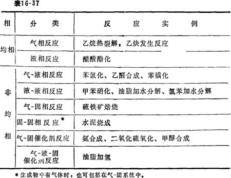 | 释义 | 化学反应设备综述 化学反应设备是化工厂的关键设备,其用途是实现化学反应过程。 1.化学反应设备要求 (1)生产强度大,即设备小而生产能力大。 (2)运转稳定可靠,调节灵便和操作弹性大。 (3)结构简单,各零部件连接方式和受力合理。 (4)催化剂层温度分布合理,充分发挥催化剂效能。 (5)流体在床层内均匀分布,设备阻力小。 (6)设备日常操作费低,一次性投资费用少。 2.化学反应的相分类(表16-37) 表16-37 化学反应的相分类