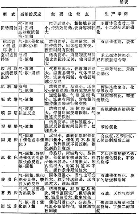 3.反应器型式与特性(表16-38) 表16-38 反应器型式与特性