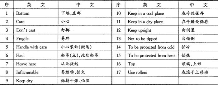 表9-5 储存运输用语或包装外标志