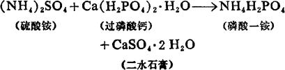 上述反应生成的氯化铵和硝酸钾比硝酸铵吸湿性还低,具有更好的物理性状。 又如硫酸铵与过磷酸钙混合,发生如下化学反应:
