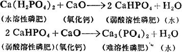 过磷酸钙、重过磷酸钙等水溶性磷肥也不能与上述的碱性肥料混合,否则会发生如下反应:
