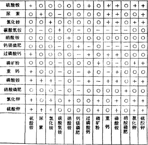 上述反应生成的磷酸二钙为枸溶性磷,在石灰性土壤上其肥效不如磷酸一钙。 此外,尿素与氯化钾、过磷酸钙、钙镁磷肥等混合都易吸湿结块,必须随混随施。 3.不可混合 有些肥料应分别应用,不能混合。例如,钙镁磷肥、窑灰钾肥、石灰等碱性肥料,不能与含有铵态氮的肥料,如氯化铵、硫酸铵、碳酸氢铵、硝酸铵等混合,否则会引起氨的挥发损失。如硫酸铵与石灰混合后发生如下化学反应: