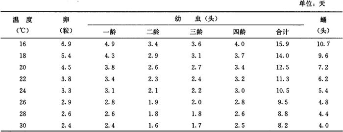 4 测报参考资料 4.1 小菜蛾各虫态历期