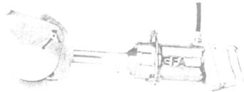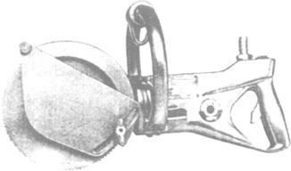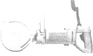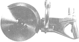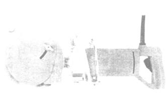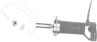 图3-3-15 半扇牛用压缩空气分割锯 技术参数: 电机功率:880W,锯片直径:270mm。 6.半扇牛电动分割锯及传动杆较长的分割锯 如图3-3-16及图3-3-17所示,供大、中型企业用。