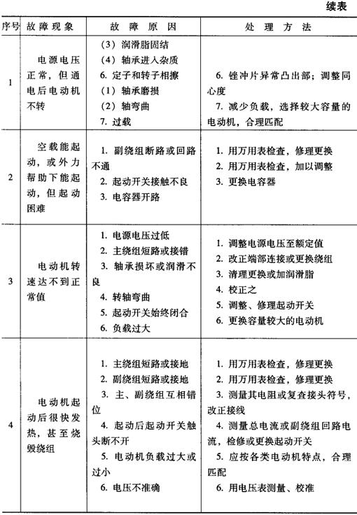 | 释义 | 单相异步电动机常见故障及处理 单相异步电动机常见故障及其处理列于表2-39。 表2-39 单相异步电动机故障及处理