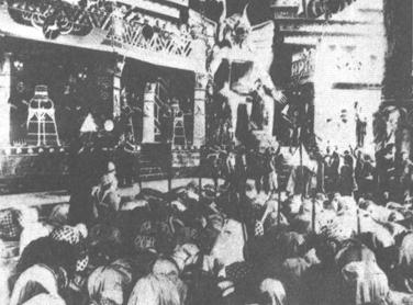 | 释义 | 卡比利亚 【片头介绍】: 1914 黑白片(无声) 180分钟 意大利伊塔里亚影片公司摄制 编导:乔瓦尼·帕斯特洛纳(加布里埃尔·邓南遮参与创作) 摄影:塞贡多·德·晓蒙 主要演员:莉迪娅·卡朗达(饰卡比利亚) 温别尔托·莫萨多(饰阿西拉) 巴托洛米奥·巴迦诺(饰马西斯特) 伊塔里亚·曼齐尼(饰索福尼斯白) 【剧情简介】: 公元前218-201年,第二次布匿战争期间,古罗马派至叙古拉城(在今西西里岛)的行政总督巴托之女卡比利亚生活在豪华的贵族庄园中。 突然,埃特纳火山爆发,倾刻之间摧毁了贵族之家,卡比利亚在混乱中被保姆克罗埃莎抢救出宅,与其父母离散。 克罗埃莎携卡比利亚逃至荒野,路遇歹徒,遂被带至市场贩卖。富人卡尔泰洛买进了卡比利亚,准备将其与其他孩童一起,献祭摩洛神。 在巨大的摩洛神像前,成千上万的迦太基居民聚集在广场,狂热地参加盛典。 就在祭司准备扔掷卡比利亚之际,隐藏在居民中间的罗马人阿西拉与其随从、大力士马西斯特突然出现。马西斯特抢出了卡比利亚。迦太基居民群起而攻之,但马西斯特等人巧妙地逃出重围。 当时,迦太基人汉尼拔率军威胁罗马。迦太基女王索福尼斯白正与罗马名将马西尼沙在花园中幽会。马西斯特携卡比利亚突然逃至园中,他企图说服两人,自己并非敌人,但马西斯特仍被拘捕,并被处罚苦役,去推巨磨。 罗马派军进攻迦太基,并让巨大舰队围攻叙古拉城。古希腊着名数学家阿基米德与迦太基居民一起抗击罗马人。 他发明了巨型玻璃,聚集阳光于一点,作为火种,燃烧船只。他的发明产生了巨大效果:罗马舰船一艘艘燃烧起来,使整个海面成了火海。 罗马人继续围攻被包围的城市叙古拉,迦太基人进行顽强抵抗。马西斯特被阿西拉在激烈的战斗中救出,但在潜逃过程中仍遭逮捕并被送入土牢中,受尽折磨,幸得同情两人的宫女丽莎的援助。 罗马人与迦太基士兵在城堡上进行着肉搏。在混乱中,马西斯特与阿西拉逃出土牢,马西斯特逃进王宫庭院,攀上一棵大树进入王宫内室,并发现了已长成为美丽少女的卡比利亚,马西斯特急欲救卡比利亚逃离此地,但迦太基士兵已闻声赶来,抢走了卡比利亚并关上了房门。 马西斯特被反关在房内,无法逃走,虽阿西拉赶来援救,但他仍冲不开房门。 马西尼沙率领罗马士兵纵马猛攻迦太基城市,最后,冲破城门,进入城内。 他找到了索福尼斯白,两人宣布将择日结为良缘。 马西斯特依靠自己的过人膂力,终于逃出房间,并与阿西拉一起躲进一食物储藏室,两人不断以各种食物果腹。迦太基人从室外扔入火把,以迫使两人离开。最后,马西尼沙通过索福尼斯白,获得了宽恕两人的命令。 马西斯特与阿西拉终于见到了马西尼沙与索福尼斯白,但不知马西尼沙已与索福尼斯白结合。 罗马命总督西比翁前来迦太基,西比翁指责马西尼沙的所作所为,并命令三个卫兵拘捕了不肯就范的马西尼沙。在帐篷外候审时,马西尼沙见到阿西拉,他要阿西拉秘密地送来马西斯特。马西斯特见到马西尼沙后,同意他的要求:向索福尼斯白转告他对女王的爱情并且把他的一枚戒指交给索福尼斯白作为信物。 但是,马西斯特更关心的还是卡比利亚的命运。他得知卡比利亚已被囚禁在某处,以备再次奉献给摩洛神,但只有索福尼斯白知道地点并有权释放她。 马西斯特急忙去寻找索福尼斯白。她正在为自己是当女王还是获得与马西尼沙的合法婚姻而矛盾,最后她决定自杀。 当她吞服了毒药,垂死之际,马西斯特送来了马西尼沙的真诚和信物,她微笑着倒在地上,但她告诉了马西斯特有关卡比利亚的下落。 马西斯特克服重重困难,在一座地牢中找到了被铁链紧锁的卡比利亚。他救出了她。在阳台上,马西斯特吹着风笛,向卡比利亚表白自己的爱情。 这时阿西拉却来了。他向卡比利亚表露了深情。卡比利亚深为感动,同他拥抱。马西斯特明白,他们两人相爱是难以阻挡的,他含着一种兼有痛苦与愉快的心情,目睹两人的亲热情景,悄然退到一旁,继续吹着颂扬爱情的曲调。 。【鉴赏】:这是一部场面宏伟、气象万千的故事影片,涉及民族、政治斗争以及个人之间的爱与恨。 这在当时欧美各国的电影中颇为罕见,甚至可以说是一种创举,因为当时电影一般还局限于拍摄短片,在题材、样式上更多属于不乏打闹动作的闹剧的范围。 影片《卡比利亚》在意大利电影史上有着重要地位,也是电影与文学结合的最初一个尝试。原剧作者兼导演帕斯特洛纳以重金聘请当时意大利颇具盛名的诗人、小说家邓南遮参加本片的剧作工作,在原剧的既有内容提要上,请他撰写对白的字幕。当时,着名作家一般是羞于参加被认为是“新玩意儿”的电影写作的。 邓南遮虽在此前从未看过一部影片,对电影并不熟悉,但他还是以他的富于浪漫主义色彩、稍嫌浮夸的笔调完成了文学任务,并为影片的主要人物卡比利亚及马西斯特等人确定了名字。在以后的自传中,邓南遮也曾提到过他为本片撰写剧情和字幕的活动,他明确承认,这部影片“分享了我的某些戏剧观”。 虽然邓南遮并未阐述他的原有戏剧观以及本片究竟如何进行了“分享”的要点,然而从影片的总体风格来看,显然是体现了他所固有的那种优美、豪华、壮丽,而又略显浮夸的基调的。邓南遮曾在一次受访中谈到:《卡比利亚》是一部“表现基督降生前三世纪全世界出现的最悲惨、最
