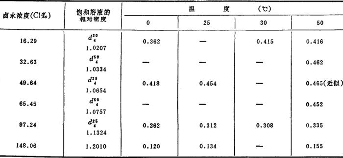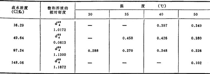 表2-5-18 无水硫酸钙在卤水中的溶解度(g/100g溶液)