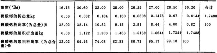 表2-5-191m3海水(地中海海水,浓度3.5°Bé)浓缩至各种不同浓度,硫酸钙的析出量和析出率