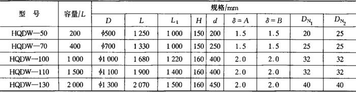 图4-14-5 卧式HQDW轻型不锈钢贮罐 表4-14-5 卧式HQDW轻型不锈钢贮罐主要技术参数
