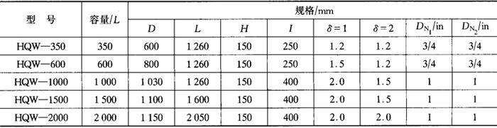 表4-14-4 卧式HQW轻型不锈钢贮罐主要技术参数