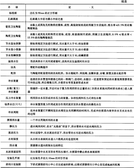 | 释义 | 卫生陶瓷 1.术语(表6-68) 表6-68 卫生陶瓷的相关术语