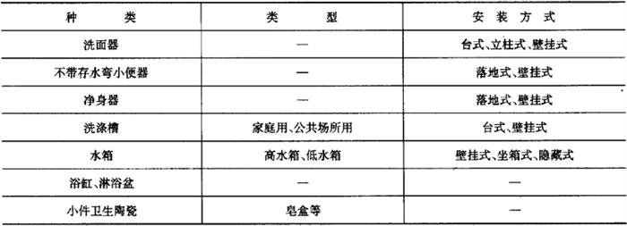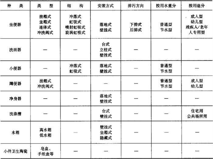 (2)陶质卫生陶瓷 陶质卫生陶瓷产品分类见表6-70。 表6-70 陶质卫生陶瓷产品分类