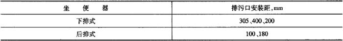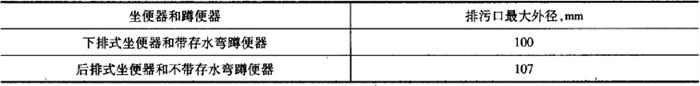 注:特殊情况可按合同要求。 2)坐便器和蹲便器排污口最大外径见表6-76。 表6-76 坐便器和蹲便器排污口最大外径
