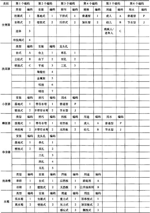 1)类别码见表6-79。 表6-79 卫生陶瓷产品的类别码