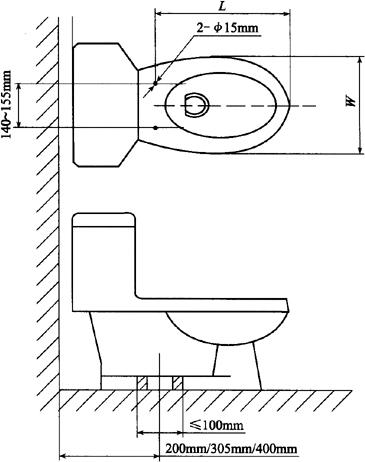 (2)重要尺寸 卫生陶瓷产品应符合以下所规定的尺寸要求。其允许偏差没有注明的应符合表6-74的规定。 1)坐便器排污口安装距见表6-75。 表6-75 坐便器排污口安装距