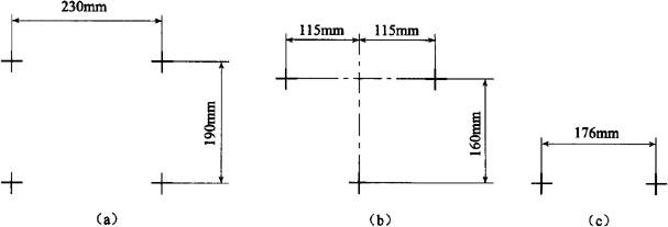 图6-8 壁挂式坐便器安装螺栓孔间距 (a)4孔;(b)3孔;(c)2孔 |