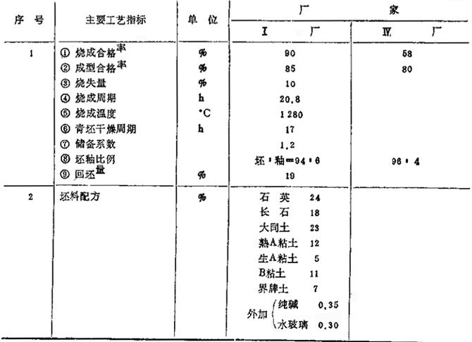 卫生陶瓷厂的主要工艺参数指标