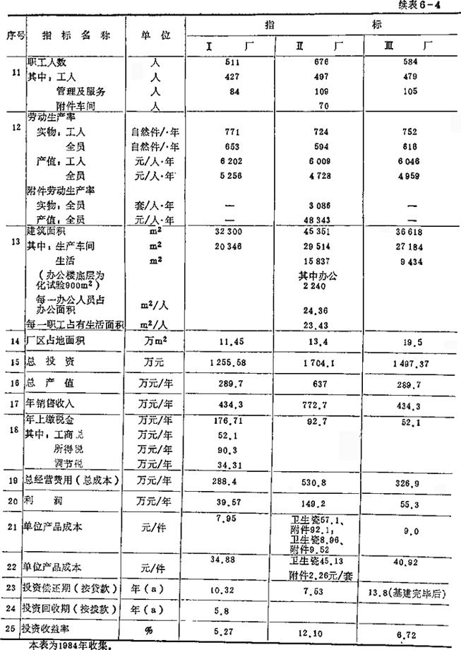 表6-4 卫生陶瓷厂技术经济指标