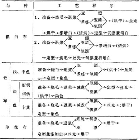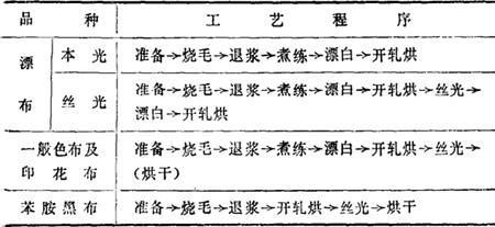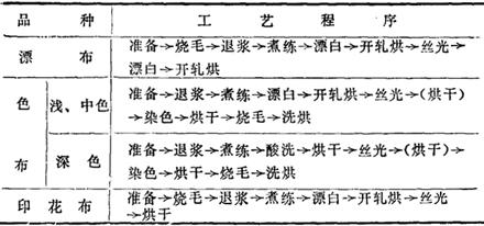 | 释义 | 印染基本知识 (一)印染工序流程 练漂、染色、印花工艺程序: 1.棉布(表18-194) 表18-194 棉布印染工艺程序