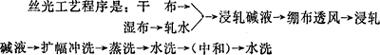 5.漂白 棉布经过煮练以后,一般还残留天然色素及部分杂质,外观不够洁白,影响成品的白度和色泽鲜艳度,因此除部分染深色的产品外,都需漂白。漂白既能去除色素,又能在不同程度上去除棉籽壳和含氮物质等杂质。对于轧碱汽蒸煮练以及用低压或者常压煮练的织物,漂白作用并不是单纯为了去除色素,而是分担很大一部分的除杂功能。 常用的漂白用剂有次氯酸盐、双氧水及亚氯酸盐三种。 漂白工艺程序是:水洗→浸轧漂液→水洗(脱氯) 6.开、轧、烘 开、轧、烘即开幅、轧水、烘干的简称。是将经过煮练、漂白后的绳状织物扩展成为平幅,再通过轧辊挤压出织物上的部分水分,最后烘干,以适应后加工需要。开幅、轧水、烘干机可以分开安装,也可以联合安装成开、轧、烘机。 开、轧、烘工艺程序是:开幅→轧水→烘干 7.丝光 棉布经丝光后,能获得耐久性的光泽,并能提高吸收染料的能力,同时提高成品尺寸的稳定性,降低缩水率,因此除少数漂白、浅色等本光品种外,一般均应丝光。