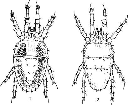 图5-61 卵形短须螨 1.雌螨 2.雄螨 【生活习性】 1年发生6~7代。以橙红色的雌螨群集于植株根际越冬,或在叶反面、腋芽等处越冬。春季气温达15℃时,雌螨出蛰,爬至叶片上取食产卵。春秋季节40天左右完成1代。夏季20天完成1代。7~9月发生最多,为害最烈。 气温在17~19℃时,卵期22.5天,幼螨7.5天,若螨期1.5天,完成1代需40天以上。当气温在27~30℃时,卵期6.0~6.5天,幼螨期3.0~3.5天,若螨期8~8.5天,完成1代需20天。 雌螨多营孤雌生殖,也可营两性生殖。雌螨一生可产卵30~40粒,其寿命35~40天,最长可达70天。 冬季和早春温暖,干旱,则越冬基数增大,在适宜条件下,次年易大发生。冬季严寒,越冬雌螨大量死亡,多雨潮湿也不利它生长发育。 【防治方法】 (1)增施肥料,增强植株抗病性。冬季清洁园地,减少越冬虫源。越冬前喷波美0.3~0.5度石硫合剂。 (2)发生期7~9月选喷20%三氯杀螨醇1000倍液,或5%尼索朗2500倍液。隔7天喷1次,连续3~4次。 |