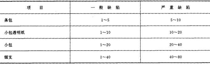 | 释义 | 卷烟产品外观质量评价系统 该系统检查产品的质量缺陷,依据该系统规定的缺陷加权系数、缺陷严重程度系数和缺陷频率,计算每一缺陷、每一项目的质量指数。所有缺陷质量指数的总和称之为该卷烟的质量指数(QI)。质量指数越小,被检验的产品质量越好。 这是一种不同于国内现有的评价卷烟外观质量的另一种方法,其质量指数是相对性的,可用于比较卷烟产品之间的外观质量。 1.缺陷加权系数、严重程度系数、缺陷频率 缺陷愈严重,缺陷加权系数(N)愈大。缺陷加权系数按条包、透明纸、小包及卷烟的顺序逐渐加大。加权系数范围见表3-4-4。 表3-4-4 缺陷加权系数