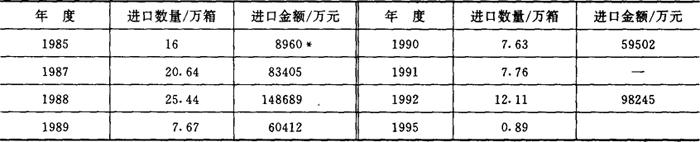 1985~1995年我国卷烟的进口情况见表2-2-23。 表2-2-23 1985~1995年我国卷烟的进口情况