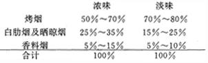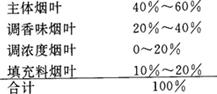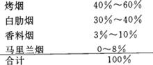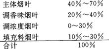 中国式的混合型卷烟的烟质特征尚未定型。目前市场上销售的混合型卷烟从浓度上可分为浓味、淡味两种。其配方结构大致如下: