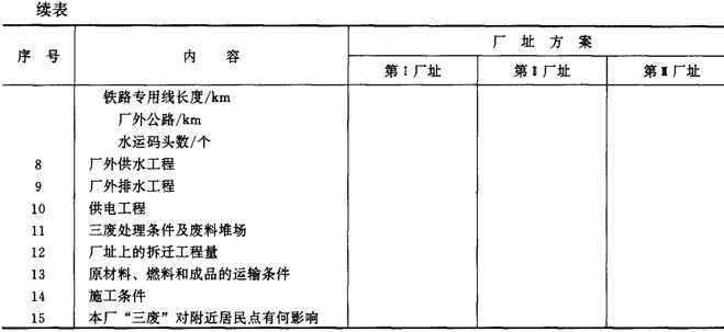 注:投资相等的项目,可以不列入表内比较。 (四)选址报告 厂址选择的最后工作是提出选址报告书。选址报告书的基本内容如下。 (1)选址小组的名单;工程项目负责人,选址工作情况概述。 (2)选址的依据;采用的生产工艺路线;建厂基本指标,从若干个厂址中提炼出可供比较的几个厂址的大致情况的说明。 (3)建设地区的自然地理、社会、经济基础结构概况。 (4)厂址建设条件包括:原材料和燃料来源、供排水、交通运输和施工、安装等条件,以及工程地质和水文地质情况。 (5)厂址方案比较,包括厂址技术条件比较表和各个厂址建设费用、经营费用比较表及其说明。 (6)对各个厂址方案的综合分析论证,提出推荐方案。 (7)当地主管机关对厂址的意见。 (8)存在的问题及解决的措施。 还应附上各种协议文件、区域位置规划图、工厂总平面布置图等有关附件。 |