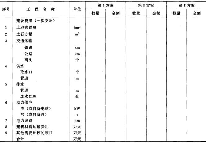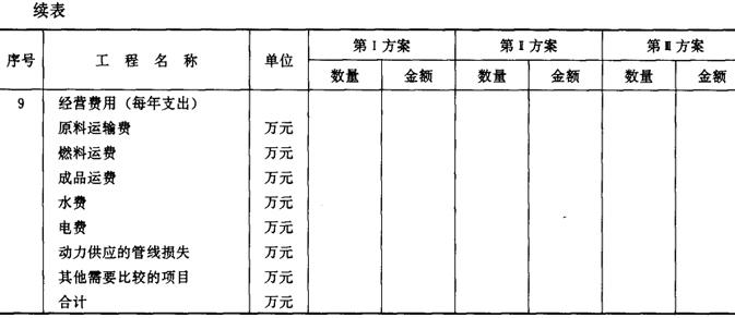 注:上表可用工程量做比较,亦可用描述优缺点来进行比较。 表10-1-4 建设费用和经营费用比较表