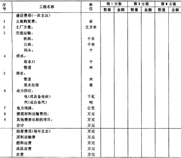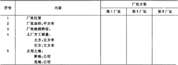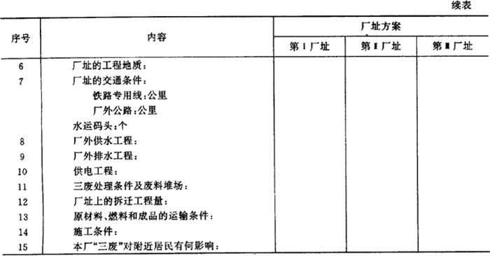 注:投资相等的项目,可以不列入表内比较。 (4)提出选址报告 厂址选择的最后工作是提出选址报告书,其基本内容包括: 选厂址依据、建设地区概况、厂址建设条件概述、厂址方案比较表、各厂址方案的综合论证分析、推荐方案的理由、当地领导部门对厂址的意见、存在问题及解决办法及附件(有关协议文件,厂址规划示意图以及工厂总平面布置示意图)。 |