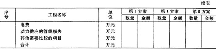 注:上表可用工程量作比较,亦可用描述优缺点进行比较。 表4.2.2-2 建设费用和经营费用的比较表