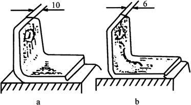 图9-35 弯曲方向与减薄弯曲 a.顺板纹弯曲 b.开槽减薄 表9-11 常用材料的最小弯曲半径rmin(t为板料厚度)