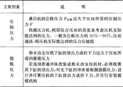 | 释义 | 压机选择 (一)压机选择的依据 选择压机时一般应考虑的主要因素见表6.2-25。 表6.2-25 压机选择的依据