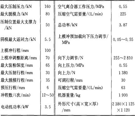 (二)粉末冶金专用压机的规格 1.转盘式压机(表6.2-26) 表6.2-26 转盘式压机主要技术参数